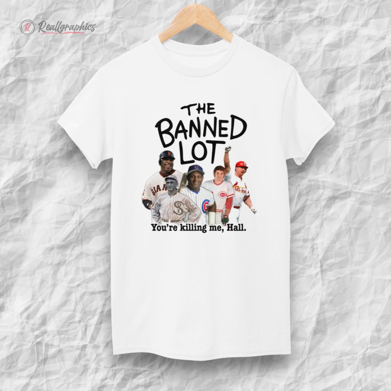 The punchline? The text below reads "You're killing me, Hall," a hilarious twist on the movie's famous quote, directed squarely at the voters keeping these stars out. Whether you believe they belong in the Hall or just miss the era of home run chases, this tank top is a grand slam of nostalgia and debate.