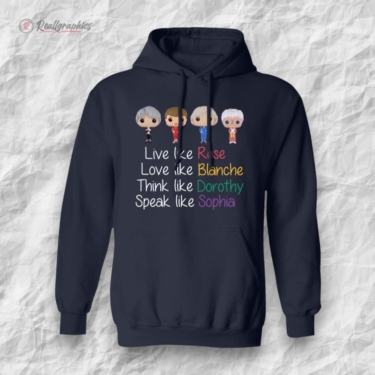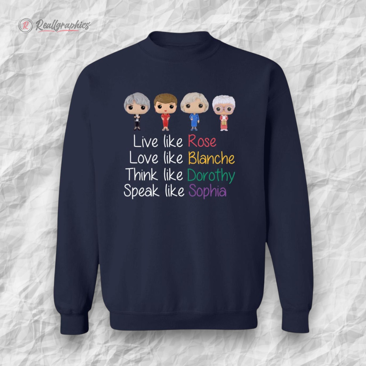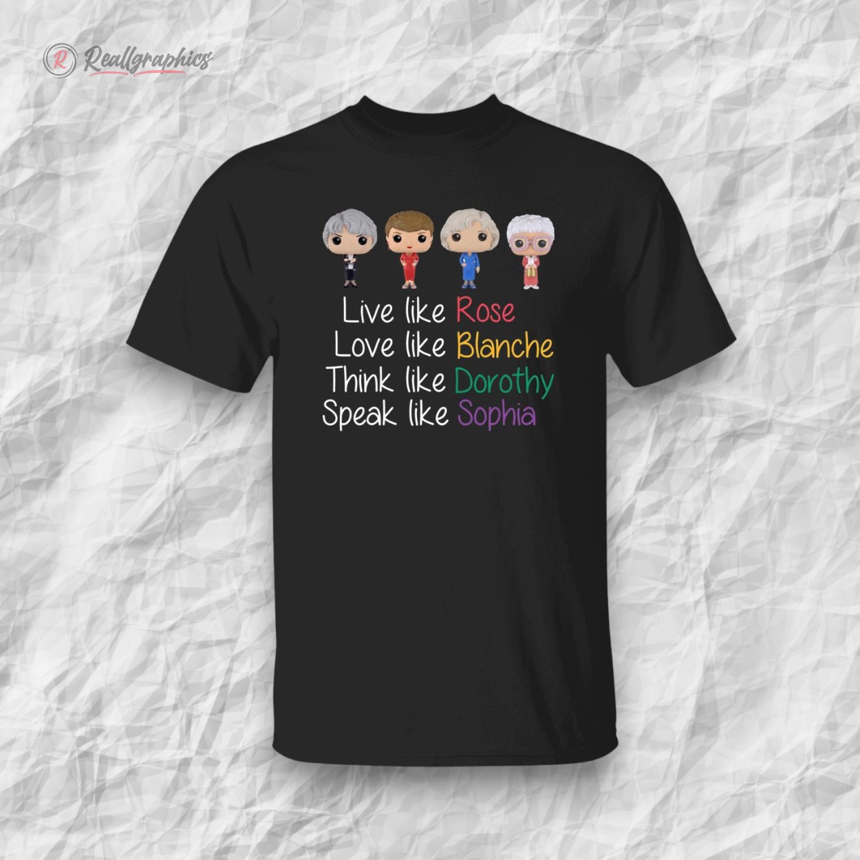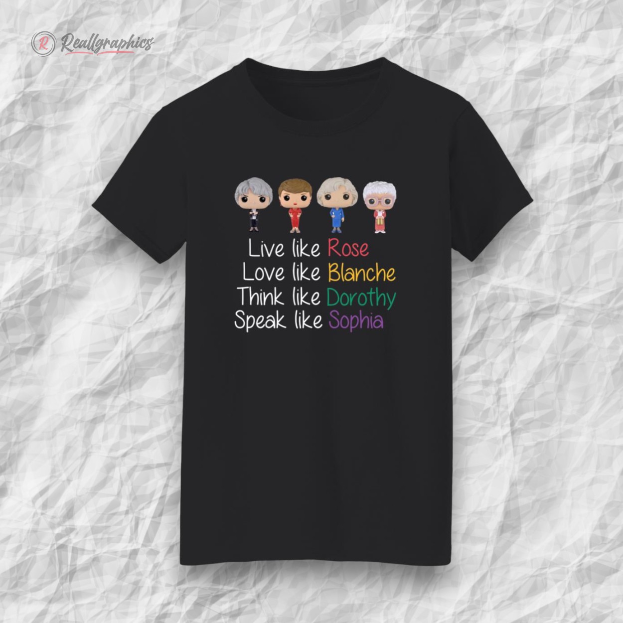 Sunlight filters through a retro kitchen window, casting warm hues that seem to echo the playful spirit of a beloved sitcom era. Splashed across soft fabric, a series of handwritten quotes bubble with charm, each line penned in a different bright color like fragments of laughter caught mid-air. Above them, five small icons capture iconic silhouettes, teasing memories of four friends whose wit and warmth never faded. The Golden Girls shirt feels less like a garment and more like a shared secret among those who treasure the sharp humor and genuine heart of that incomparable ensemble. It invites wearers to showcase their nostalgia with a bold yet casual confidence, the kind of confidence born from knowing who you are and where your joy comes from. This is a shirt for those who don’t just watch The Golden Girls—they carry a piece of that spirit into their everyday, whether out with friends or savoring a quiet moment at home. Pair it with well-loved jeans or a soft cardigan and you’ve got a look that speaks volumes: playful, authentic, unapologetically you. Ideal for those who appreciate a conversation starter or a hint of retro charm in their wardrobe, it’s equally suited to casual days or thoughtful gifts for fellow enthusiasts who cherish the laughter and lessons from that unforgettable cast. The Golden Girls shirt does more than celebrate pop culture; it connects personality to a timeless sense of belonging and fun.The Golden Girls Live Like Rose Love Like Blanche Shirt