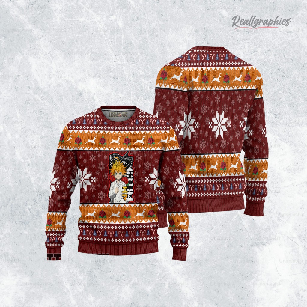 Stay warm and festive with this custom anime sweatshirt! Featuring Emma, it's perfect for any fan of the series. A unique and cozy way to celebrate the holidays! Get yours today and show off your love for the series this Christmas season.