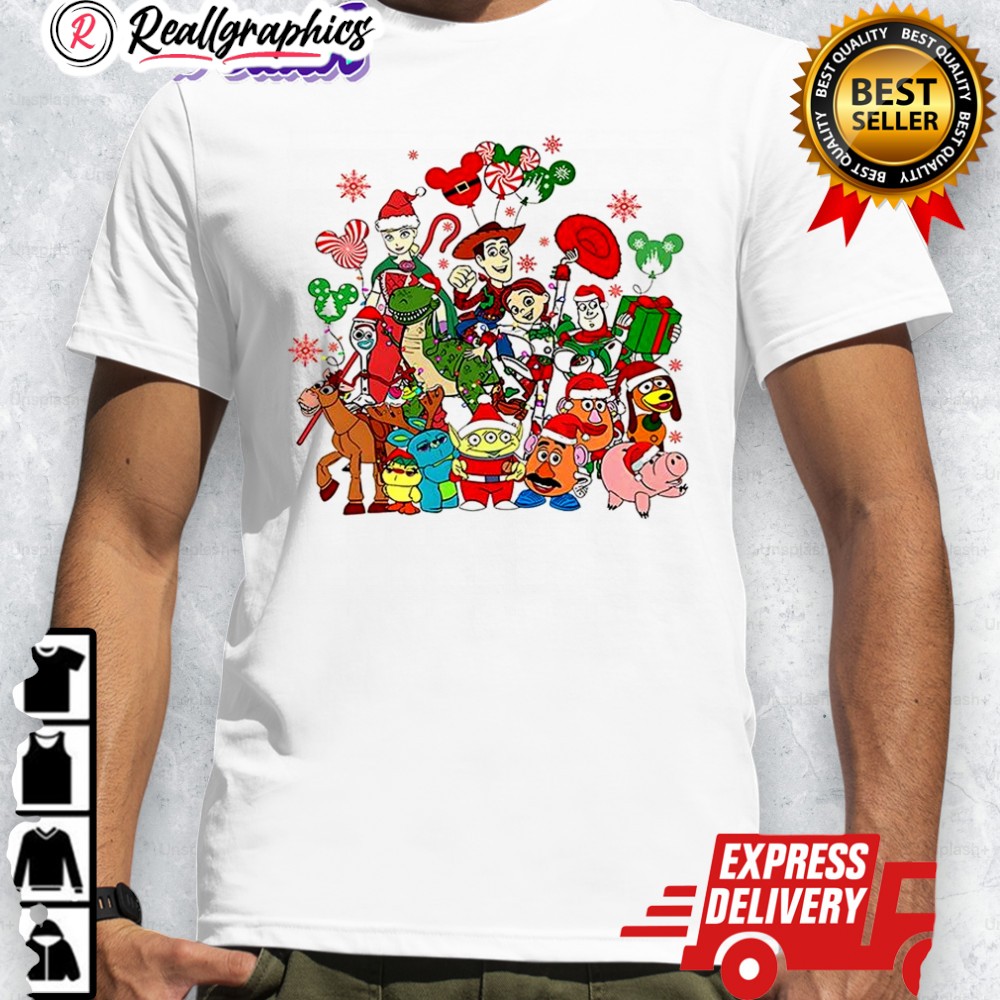 Celebrate the holidays with Woody, Buzz, and the whole gang! This festive shirt features your favorite Pixar pals spreading Christmas cheer. Get ready for cozy nights and magical memories this season. Perfect for family gatherings and holiday adventures! 🎄✨ Toy Story Character Merry Christmas Shirt