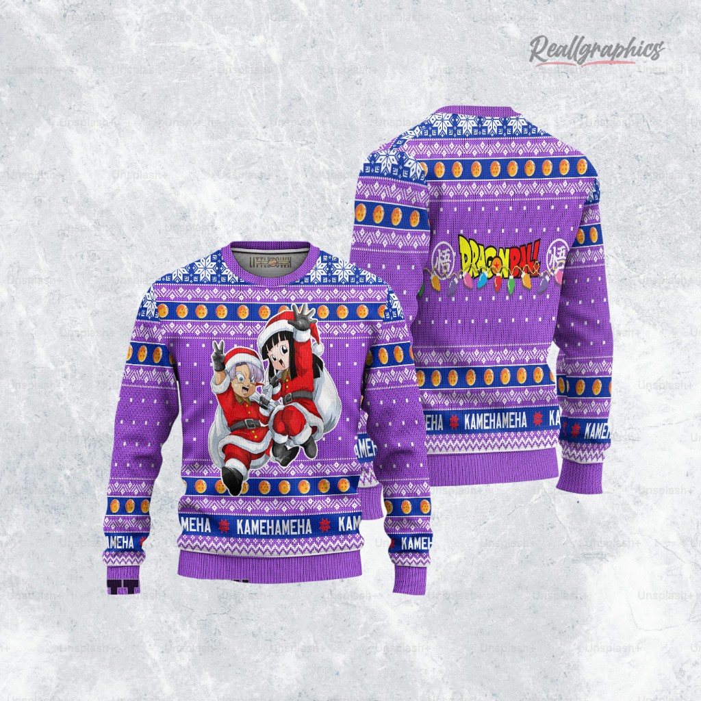 Get ready to fuse holiday cheer with Saiyan style! This Dragon Ball Z-inspired Christmas sweater featuring Trunks and Mai is the perfect way to show off your love for the series this festive season. Grab yours now and power up your ugly sweater game! Limited quantities available.