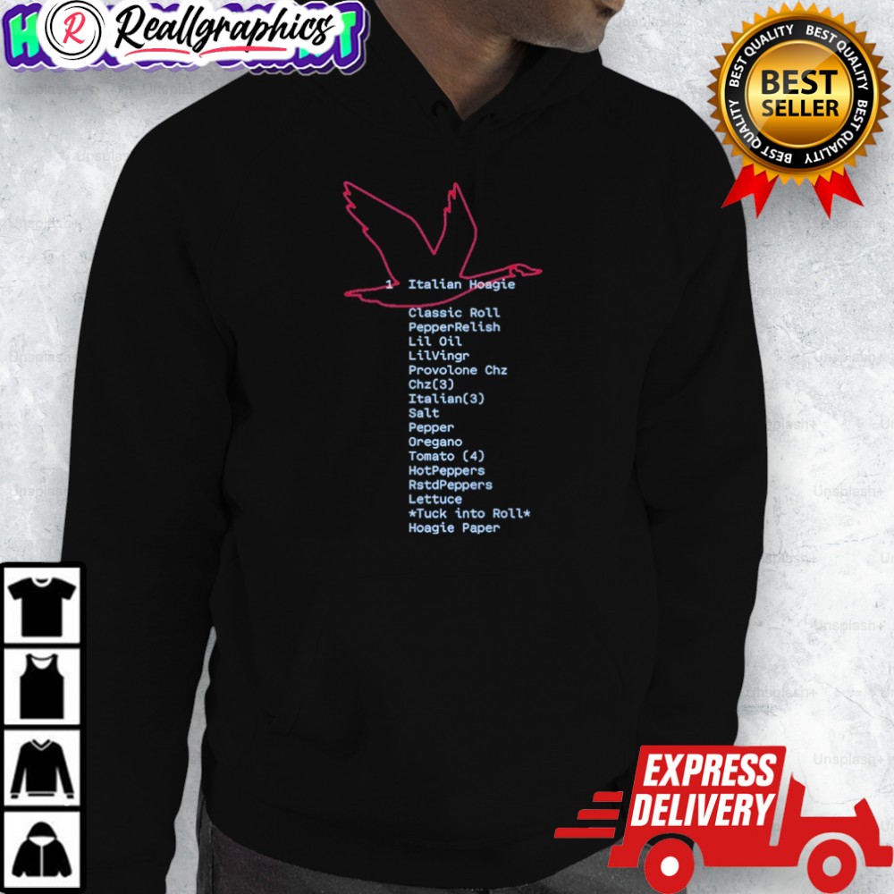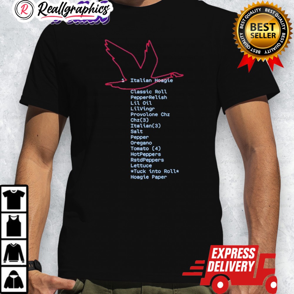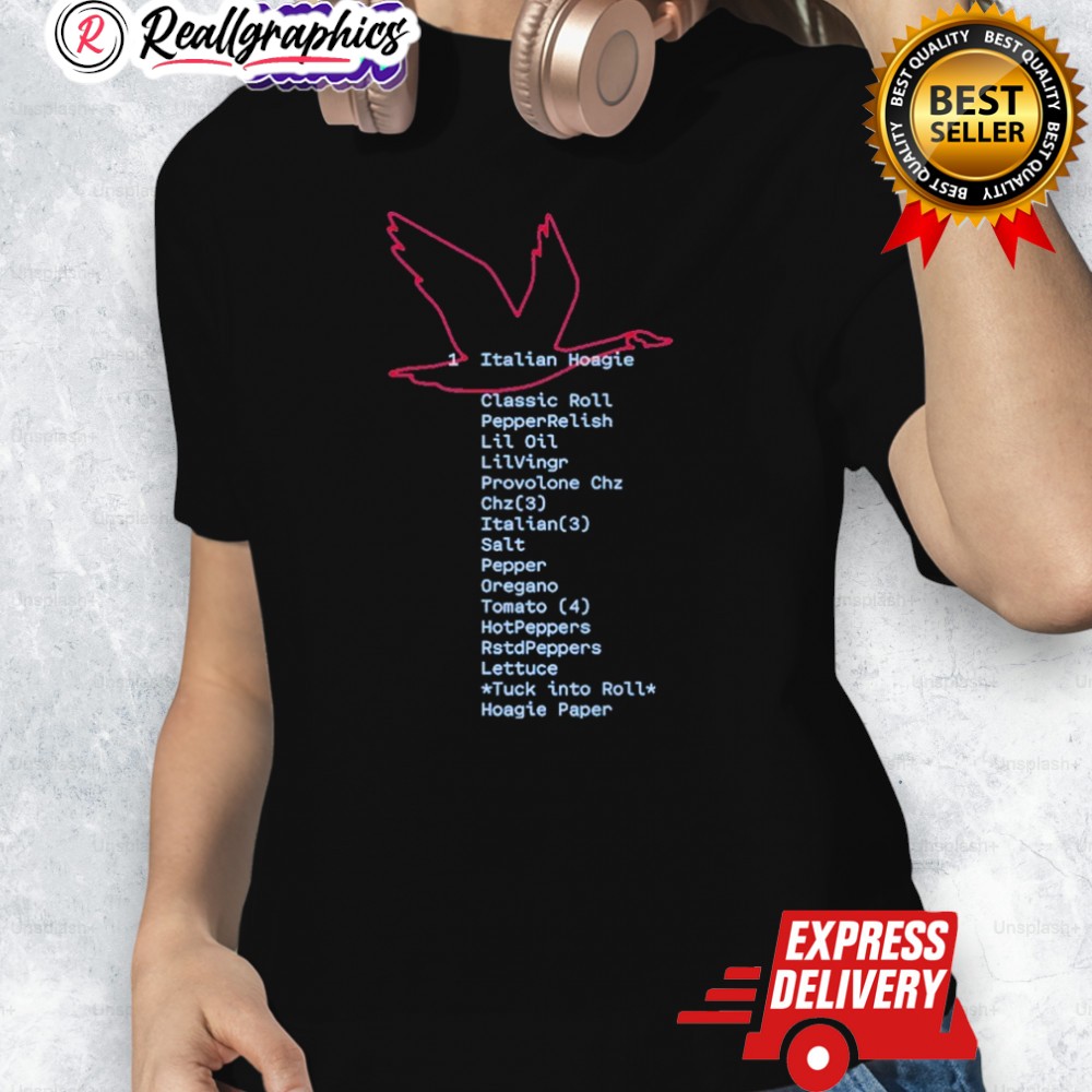 Craving that perfect Italian hoagie experience? Now you can wear your usual order! Show off your sandwich style with this fun and comfy tee. It's the ultimate conversation starter for fellow hoagie enthusiasts. Get yours today and represent your favorite deli order! Wawa Italian Hoagie Order Shirt