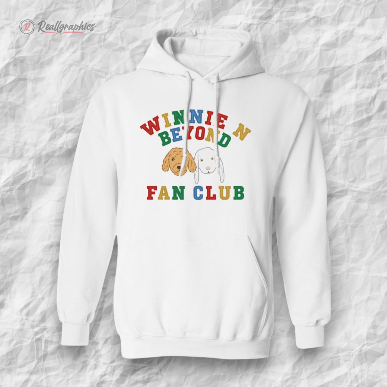 Two playful cartoon dogs sit side by side, their expressions radiating a mix of mischief and warmth. Above them, the words Winnie n Beyond Fan Club arch in bold, uppercase letters, each character painted in a splash of rainbow colors that curve gently over the duo. The white backdrop of the hoodie lets these lively illustrations and cheerful typography pop, creating a vibrant scene that feels both carefree and inviting. This sweatshirt captures more than just whimsical visuals; it speaks to a community that delights in clever parodies and the joyful bond between dogs and their humans. Those who find themselves drawn to this design don’t just appreciate the look—they embrace the playful attitude it represents. It’s a subtle way to declare an affinity for lighthearted fun rooted in familiar, beloved storytelling, while celebrating the quirks and charm of canine companions. Anyone who spends weekends exploring parks or curling up with kids and a good laugh would see the charm here. The design’s vivid, friendly energy also makes it a thoughtful gift for dog lovers who enjoy a splash of humor and color in their everyday wardrobe. With this cozy piece, the spirited link between fan culture and genuine affection for pups finds an easy, joyful expression.Winnie n Beyond Fan Club Sweatshirt