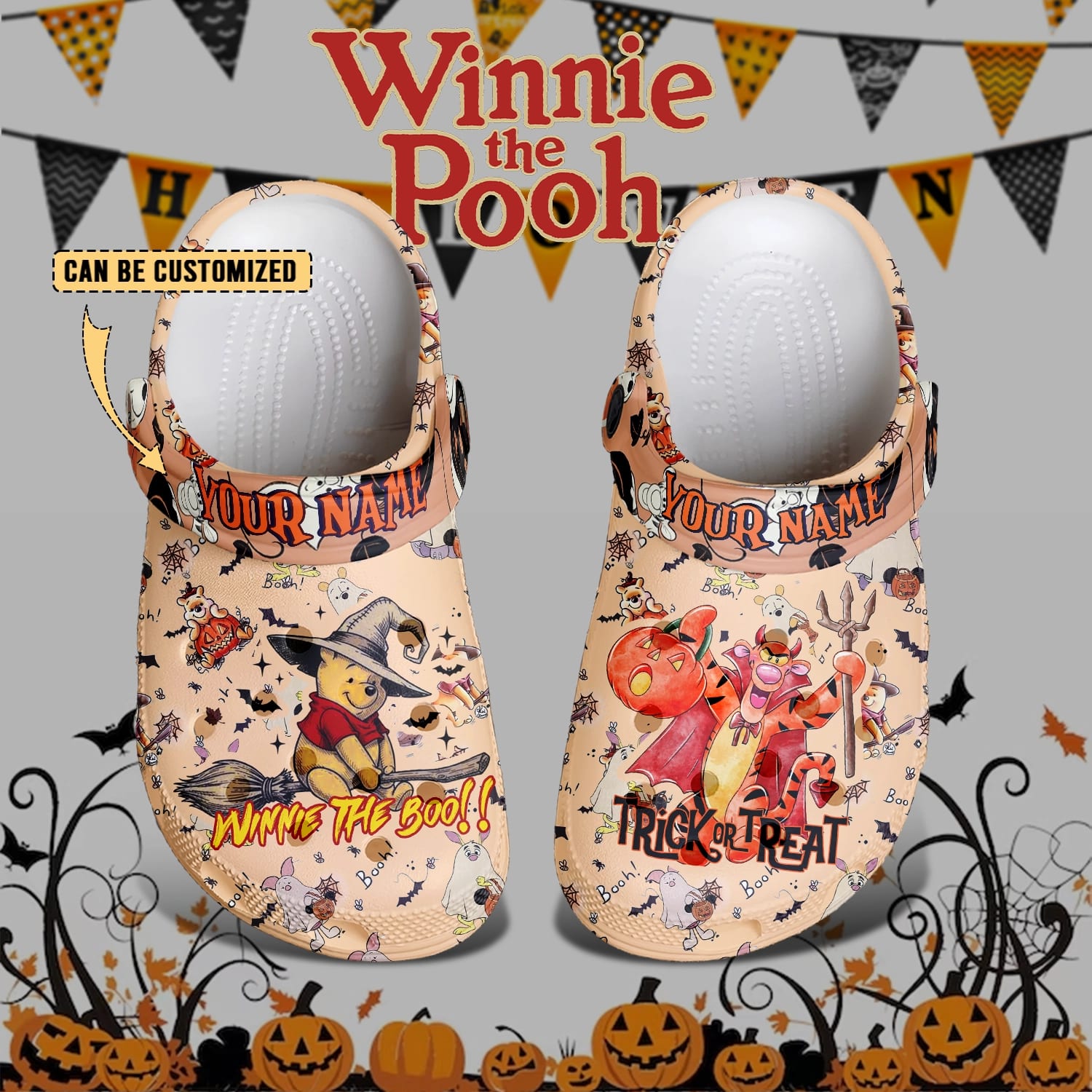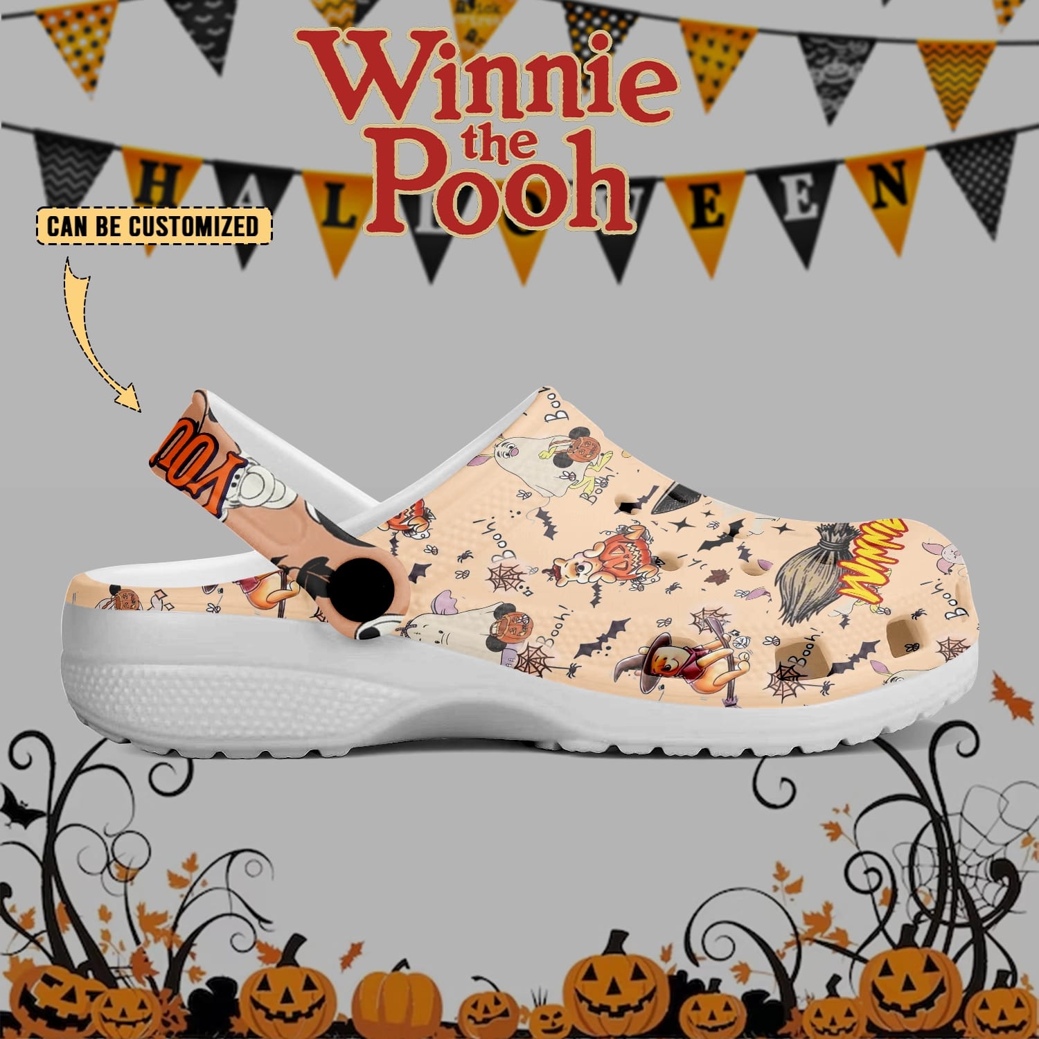 Personalized Winnie the Pooh Halloween Clogs – “Winnie the Boo!” Custom Name Strap