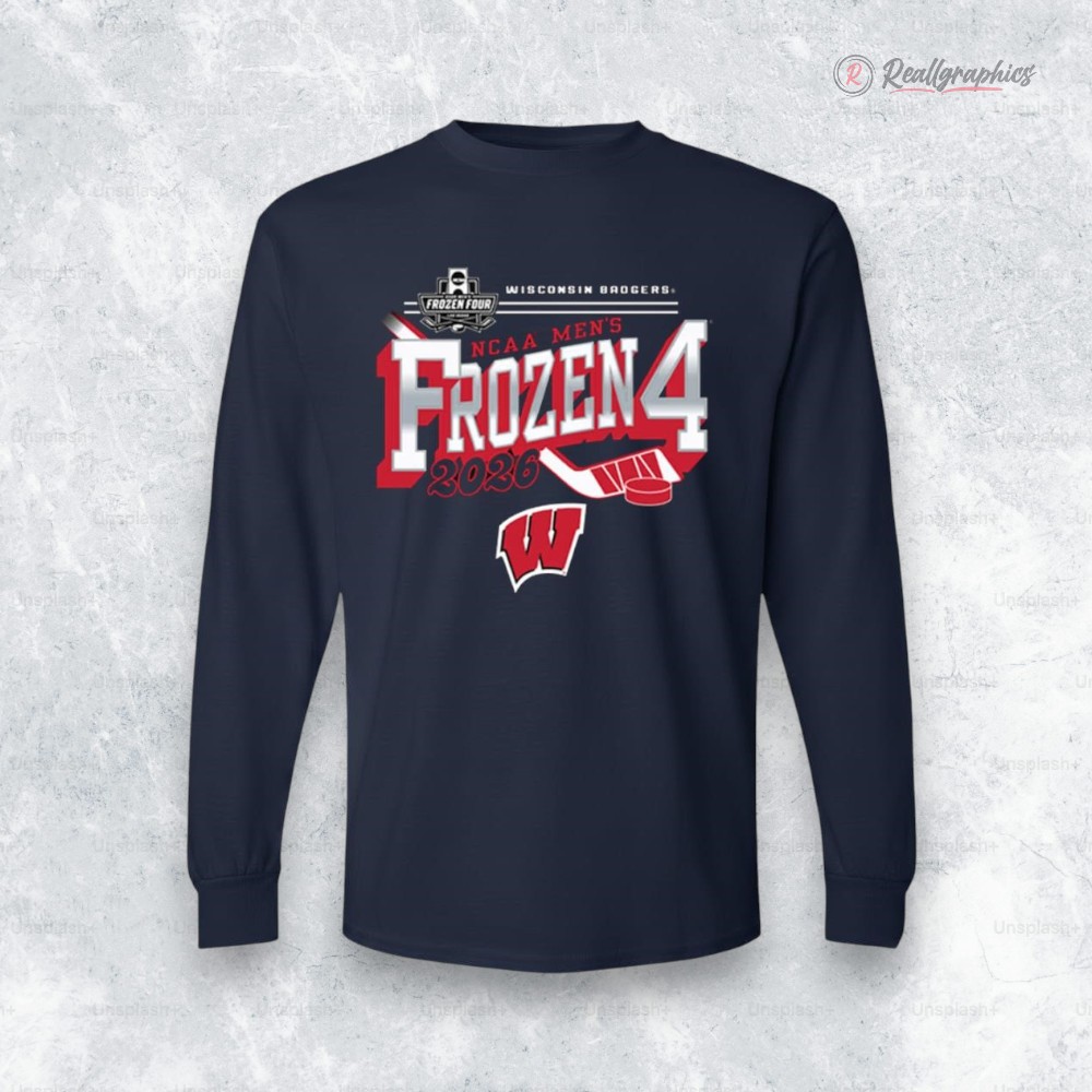 The bold red and white hues of the Wisconsin Badgers come alive on this long sleeve shirt, where crisp block lettering sparks memories of varsity pride and intense Frozen Four showdowns. Across the chest, the phrase “Frozen 4” demands attention with its large, collegiate-style typography that feels both charged and celebratory. Nestled nearby, the NCAA Frozen Four logo and a subtle hockey puck motif punctuate the design, grounding it firmly in the high-stakes spirit of the 2026 tournament. The Badgers' iconic logo balances the layout, anchoring the visual story in a distinctive Wisconsin identity. This shirt isn’t just about showing team colors; it channels the energy of game nights, the camaraderie of tailgates, and the shared anticipation during those nail-biting college hockey moments. Anyone who’s pulled on a jersey to cheer through overtime, or who values that blend of athletic heritage and competitive edge, will see this as more than apparel. It suits college students, alumni, and anyone who lives for the culture of puck drops and rink battles. Whether it’s tossed on for a casual day around campus or layered under a jacket to watch the action unfold with friends, this design bridges the gap between spirited fandom and everyday wearability. The Frozen Four 2026 Wisconsin Badgers shirt captures a specific moment in sports history but fits naturally into the rhythm of daily life—where loyalty and identity are stitched just as firmly as any logo or typography.