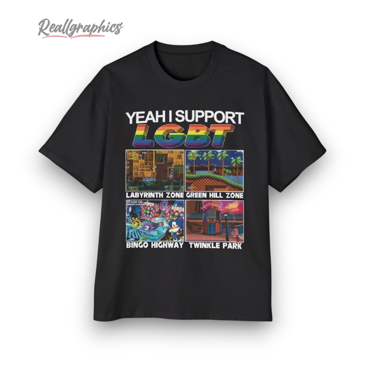 Dive into vibrant nostalgia with this dynamic Sonic-themed print, featuring bold LGBT support. Eye-catching zones like Green Hill and Twinkle Park create a visually stunning mix of color and classic gaming imagery. Perfect for expressing individuality and love for iconic adventure.
