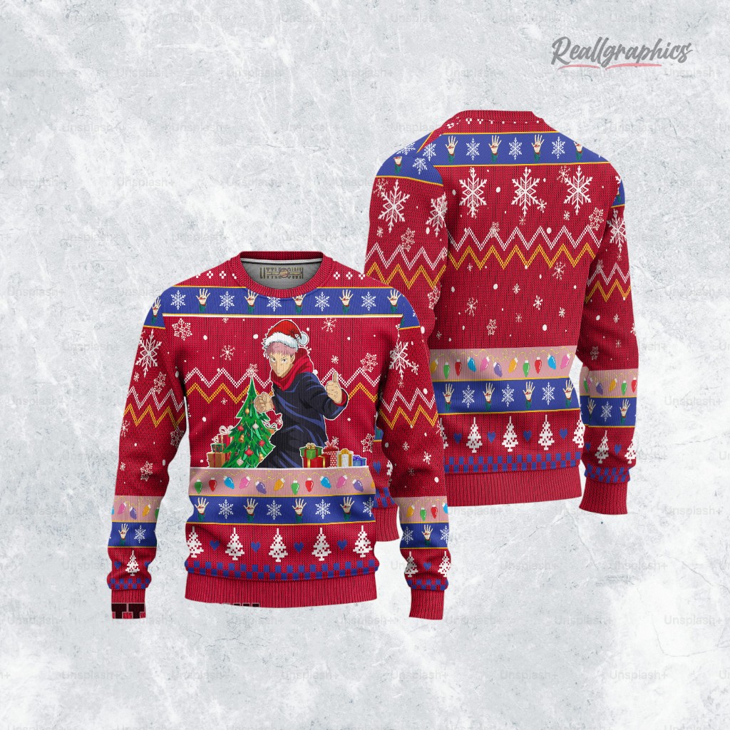 Unleash your inner Jujutsu Sorcerer this holiday season! 💥 Rock the ultimate festive (and slightly cursed) look with this custom-designed sweater. Perfect for anime fans who want to stand out at the holiday party or stay cozy while binge-watching. Get yours now! Yuji Itadori Sweatshirt Custom Jujutsu Kaisen Ugly Sweater