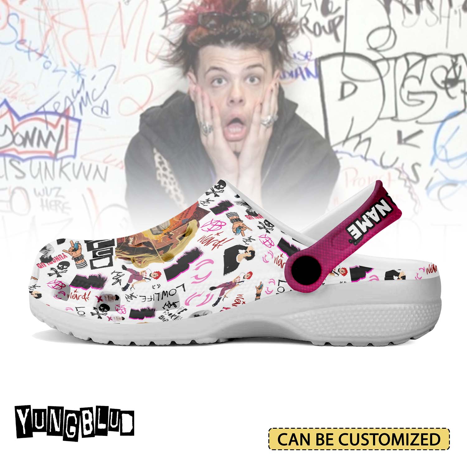 Pair with ripped denim, cargos, oversized tees, a hoodie, or an all-black fit—these clogs bring instant character. Great search matches for YUNGBLUD clogs, punk rock clogs, custom name clogs, music fan gifts, and festival slip-on shoes.